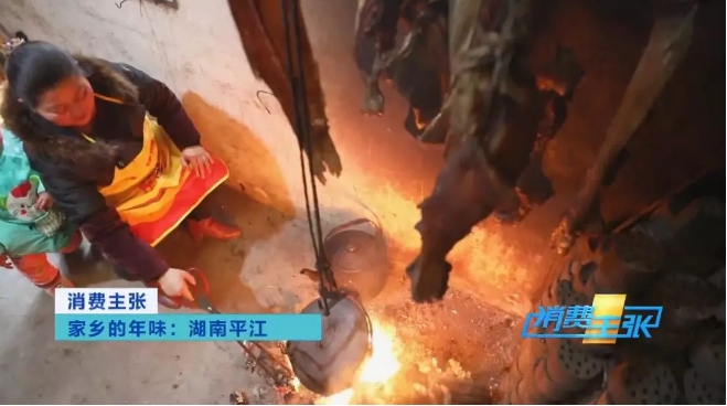 鸡汤装进家传的铁锅后,战场也随之转移。上面是家家户户都少不了的腊肉,下面是一堆柴火,铁锅就挂在这堆柴火上,急火慢炖,香气四溢。