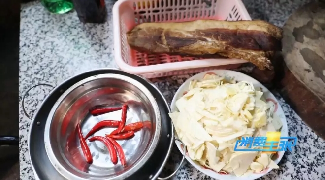冬笋炒腊肉是一道传统的名菜,更是湘菜的典型代表之一。余彪的父亲余能胜曾经当过厨师,想把这道菜做好就得让老人家出马了。