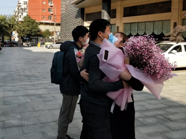 “亲爱的,你辛苦了,你是我心目中的英雄。”同样在一线战斗的感染科医生冯细诚特意请假来接女朋友。记者的镜头定格了这一幕幕重逢的欣喜。恋人、夫妻、父子、母女……拥抱过后,一起走向了回家的路。