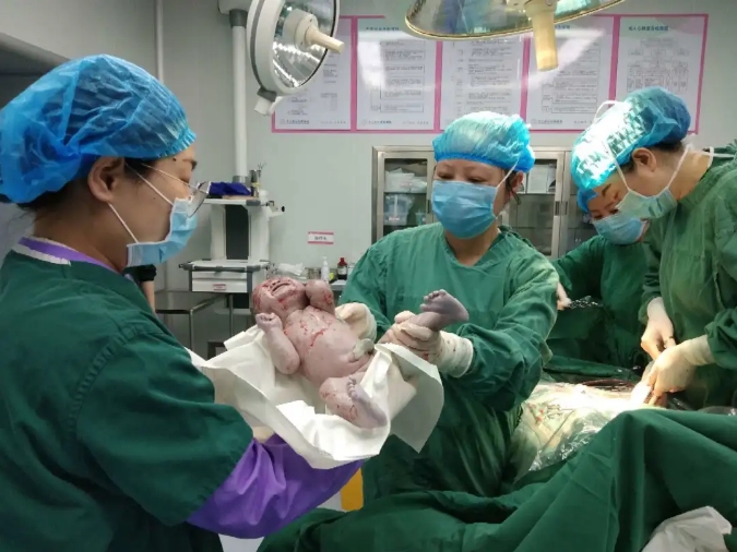 晚上11点多,手术开始。经过2个多小时的紧急救治,胎儿顺利娩出。长时间宫内缺氧让孩子面色苍白,呼吸微弱。等待在一旁的新生儿科医生立即进行新生儿复苏。5分钟后,“哇”的一声,孩子啼哭出来,现场医护人员这才稍稍松了一口气。