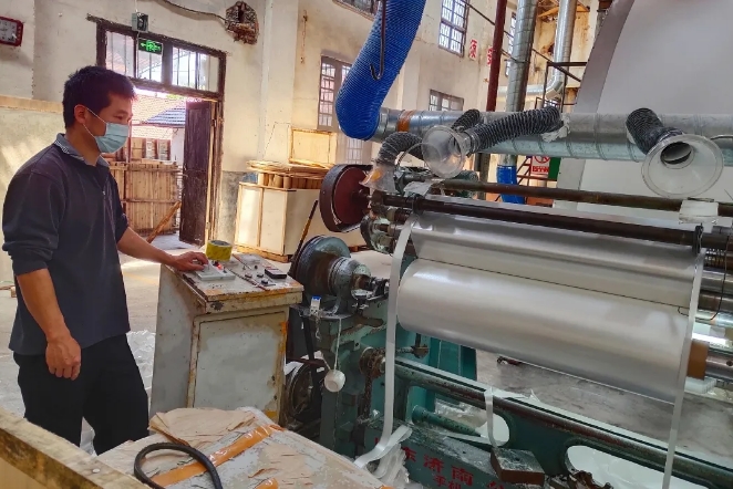 4月23日是陈细根的白班,他早早就从家里来到公司的造纸车间。公司近,骑摩托不到10分钟就到了。虽然白夜班交替有点累,但陈细根对这份工作很是珍惜,“在家门口就业,既可以照顾老婆孩子,还能赚取稳定的工资收入,对我们一家来说都是好事。”
