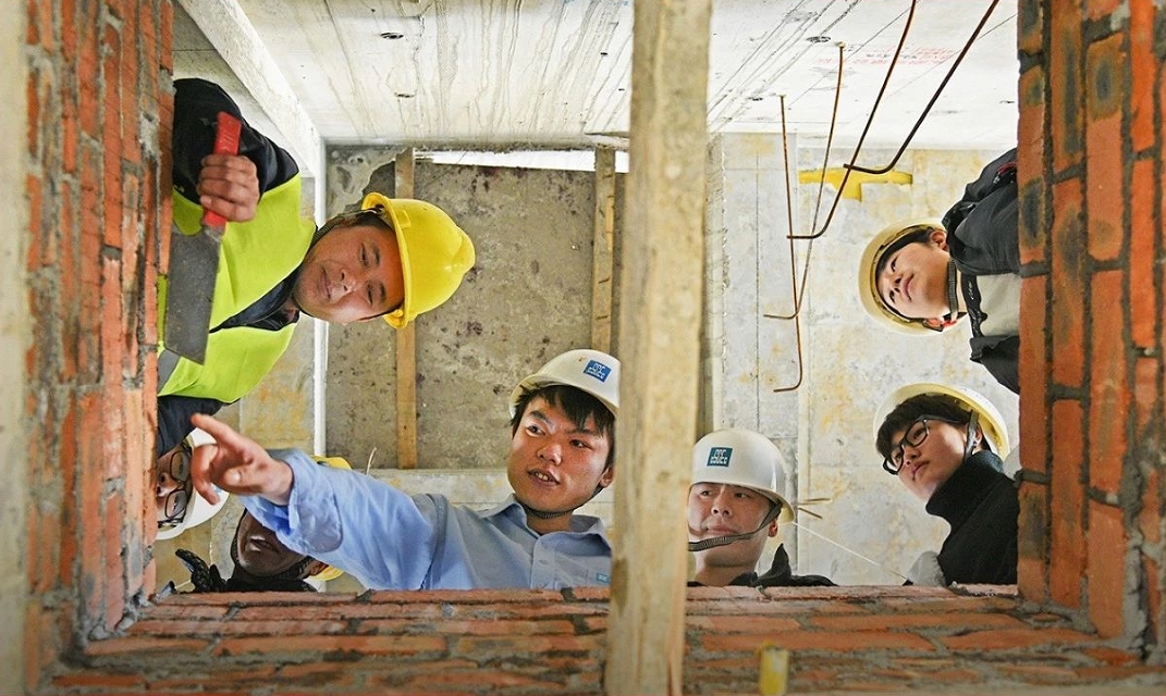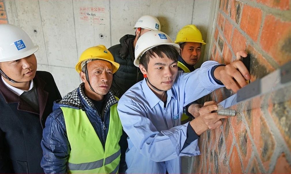 有一次,我去项目现场查看砌墙情况。一位老师傅砌的墙不符合标准,砖面不整洁,砖缝也不符合标准。我就要他重砌,他却不以为然。于是,我从手机里翻出一段不按要求砌墙发生事故的视频给他看,最终,老师傅拗不过我,还是把墙推倒了重砌。