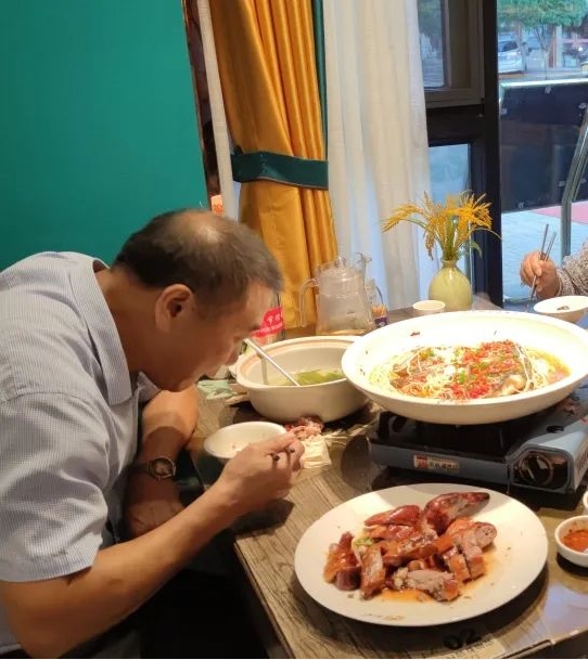 8月14日,晚上的饭点儿,在平江一家大型餐饮企业里,记者留意到,很多来吃饭的市民都是按人头点餐,即便点多了吃不完也会打包带走。市民王先生和自己的母亲、舅妈三人吃饭,点了剁椒鱼头、烤鸭和青菜汤。王先生告诉记者,他非常认可“光盘”倡议,他们家庭外出就餐也都会点得恰到好处,如果吃不完就会打包带走。