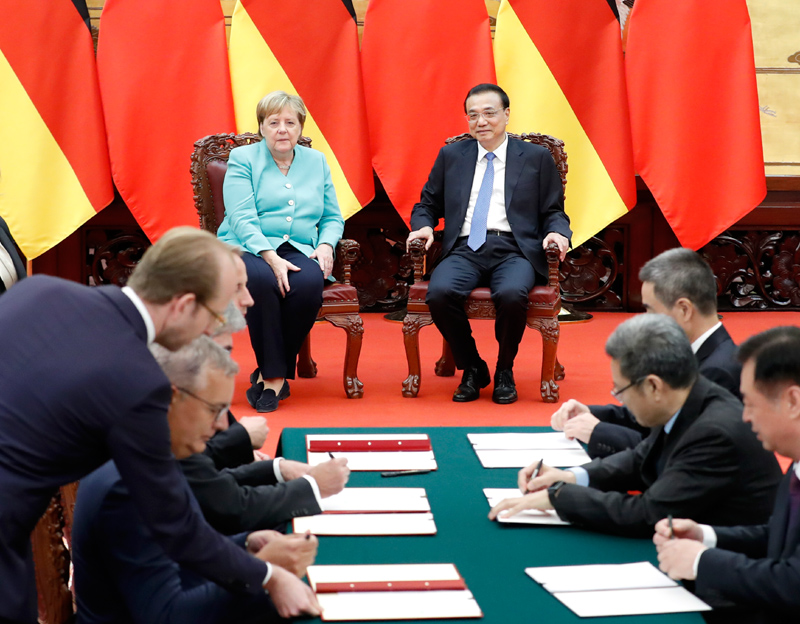 会谈后,李克强和默克尔共同见证了多项双边合作文件的签署,并共同会见了记者。