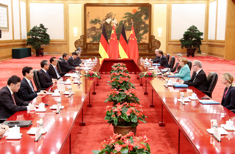 国务院总理李克强9月6日上午在人民大会堂同来华进行正式访问的德国总理默克尔举行会谈。