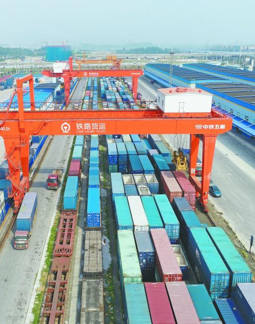 8月8日,长沙北铁路口岸国际货场,中欧班列(长沙)集装箱货区。中欧班列(长沙、怀化、株洲)已成为湖南联通欧洲市场的大通道。目前,湖南开行的中欧班列,已进入全国中欧班列第一方阵。(记者 李健 摄)