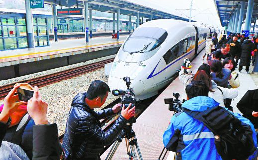 2017年12月26日,怀化南站,怀邵衡铁路本线运营的首趟(怀化南至衡阳东)列车发车。(资料照片)湖南日报·华声在线记者 徐行 摄