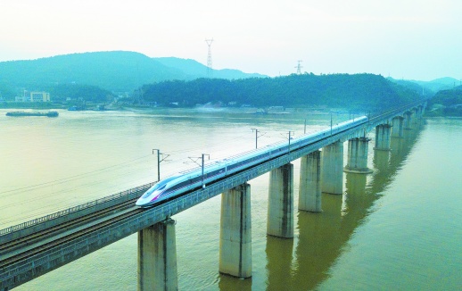 6月26日,一辆武广高铁列车从湘江大桥上驶过。湖南日报·华声在线记者 辜鹏博 摄
