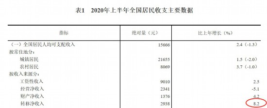 按收入来源不同,居民可支配收入可分为工资性收入、经营净收入、财产净收入和转移净收入。国家统计局提供数据显示,上半年,全国居民人均工资性收入9010元,占可支配收入的比重最高为57.5%;人均转移净收入2938元,增速最高为8.2%。