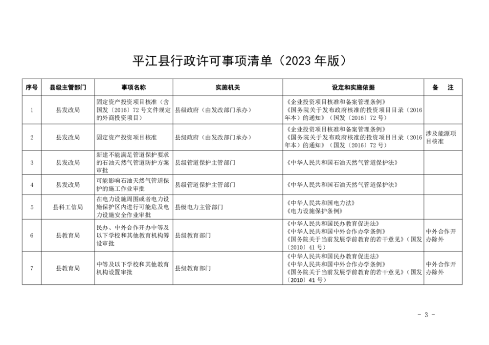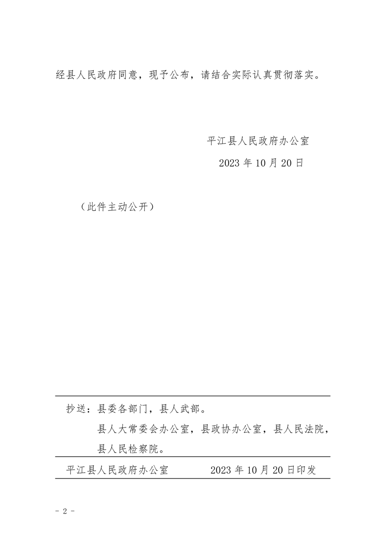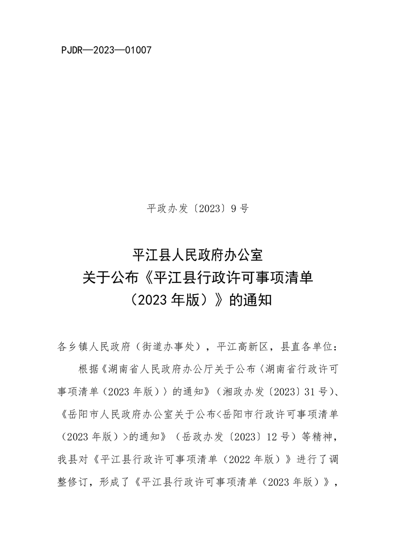 平江县人民政府办公室关于公布《平江县行政许可事项清单 (2023年版)》的通知