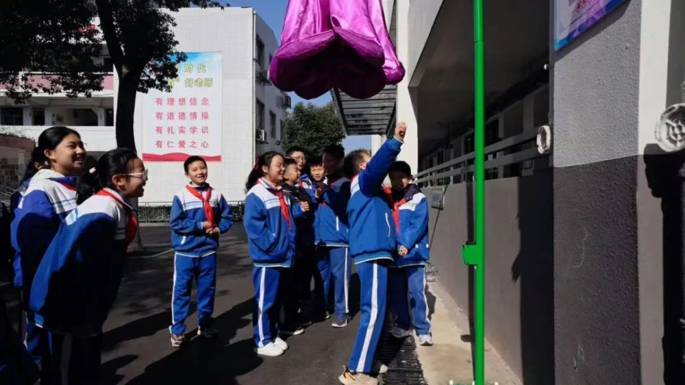 (新城学校,孩子们在减压伞下喊出愿望和心声)