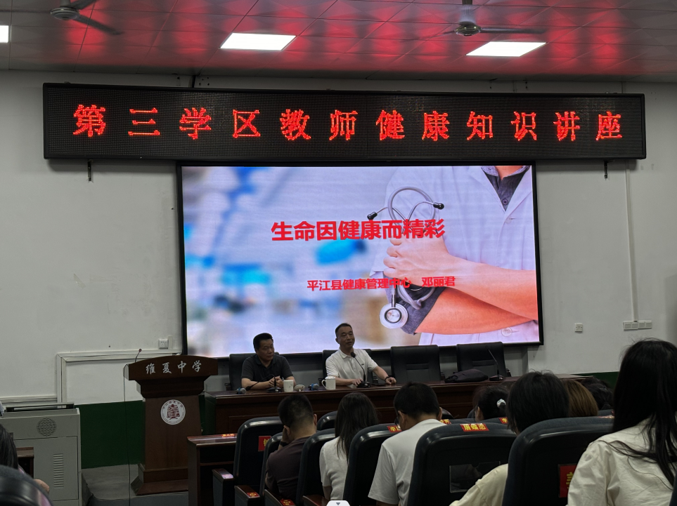 5月13日晚7时,栀子花香萦绕的维夏中学阶梯教室灯火通明,来自第三学区集镇及36所偏远农村学校的232名教师代表齐聚一堂,参加由县健康管理中心主任、首席专家邓丽君主讲的《生命因健康而精彩》专题健康讲座。这场持续100分钟的活动,是该学区首次针对教师群体开展的系统化健康关爱行动。