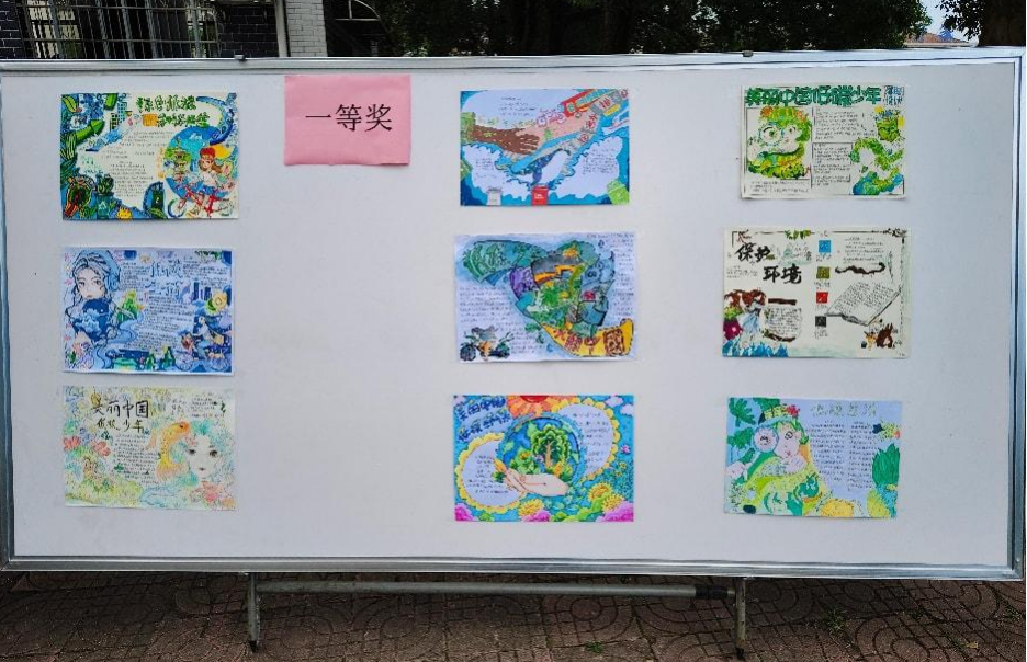 活动期间,开展“童心绘绿”手抄报创作大赛。学生们围绕“守护蓝天·节约能源”“万物共生·少年先行”“美丽中国·低碳少年”三大主题,勾勒生态愿景。经学校评审,162幅获奖佳作从近千幅充满童真智慧的环保作品中脱颖而出。目前,优秀作品正在各校进行“绿色创意巡回展”,用孩子们纯真的视角向师生们诉说着生态环境保护的中国故事。