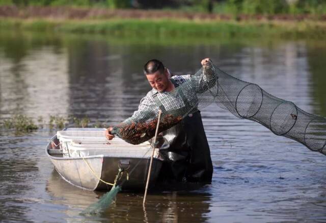 (虾农正忙着收获稻虾。来源:益阳发布微信公众号)
