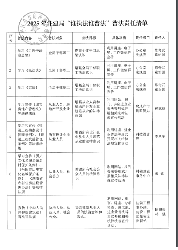 2025年住建局“谁执法谁普法”普法责任清单