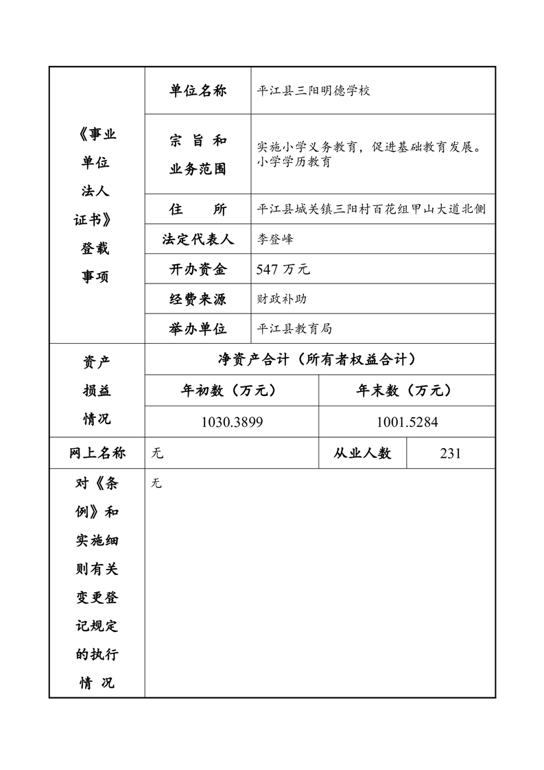 平江县事业单位法人年度报告公示