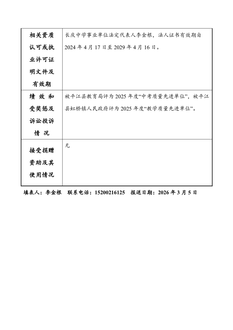 平江县虹桥镇长庆中学