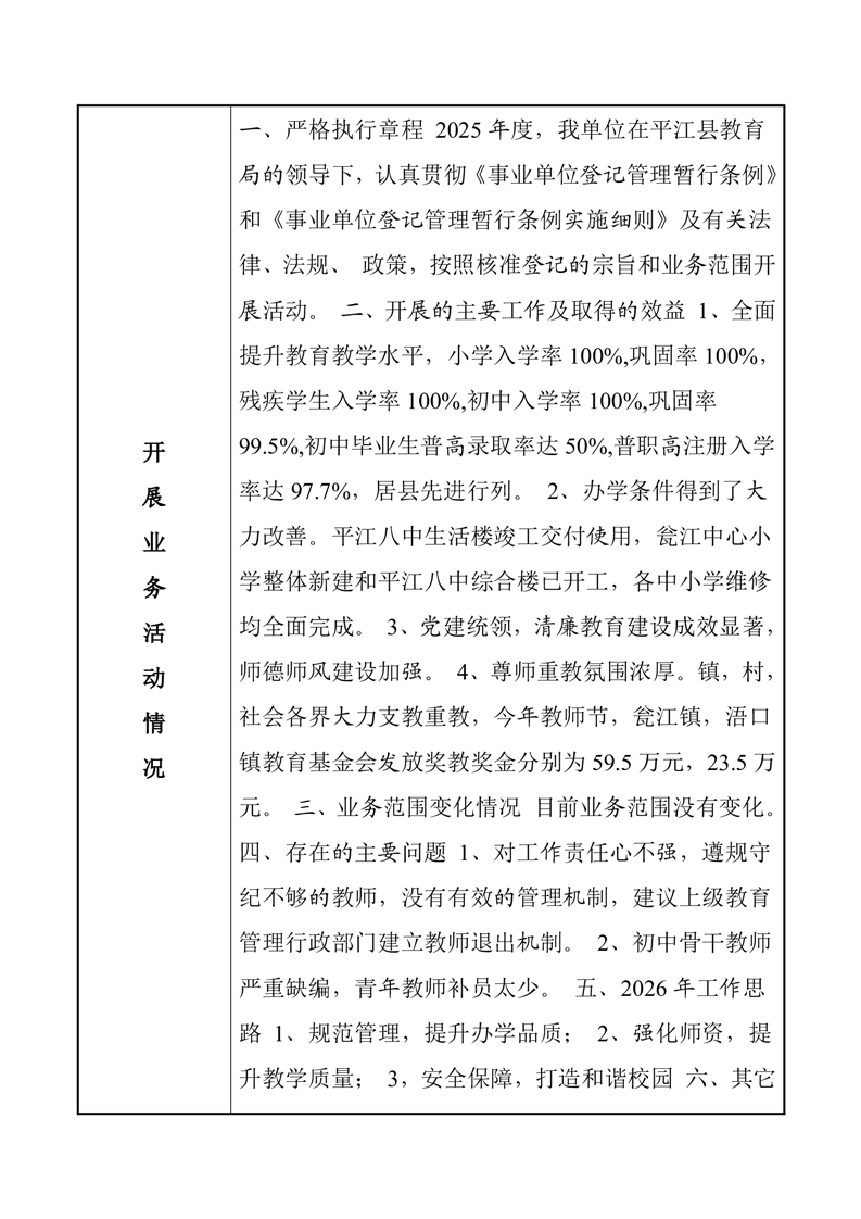 平江县事业单位法人年度报告公示