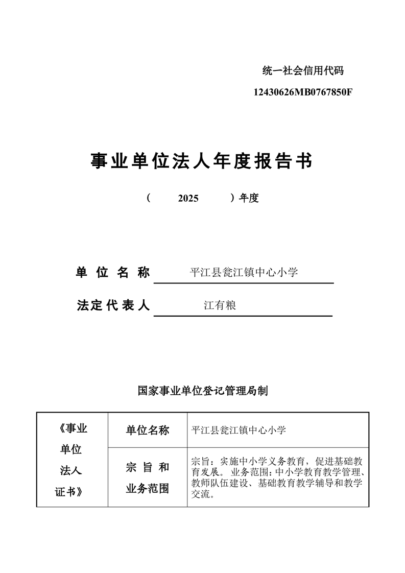 平江县事业单位法人年度报告公示