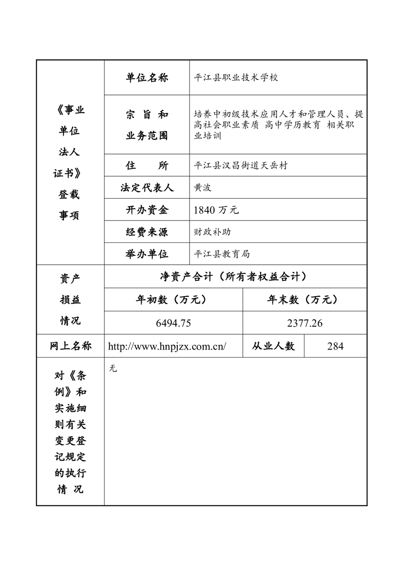 平江县事业单位法人年度报告公示