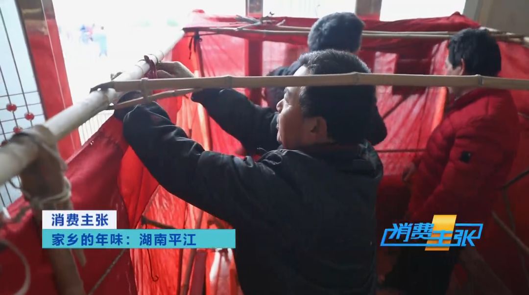 余含兮和朋友们忙着写春联,而他的母亲黄细华正在门口的池塘边忙活着,用长竹竿挑起前一天下的鱼笼,里面有几十条小鱼。火焙鱼是平江的一道传统名菜,而这些小鱼正是这道菜的主要原材料。