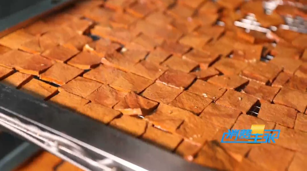 淡黄色的豆腐干经过卤制后,颜色变成酱色,之后进入烤箱烤二十分钟,随后再次卤制,如此反复三次。