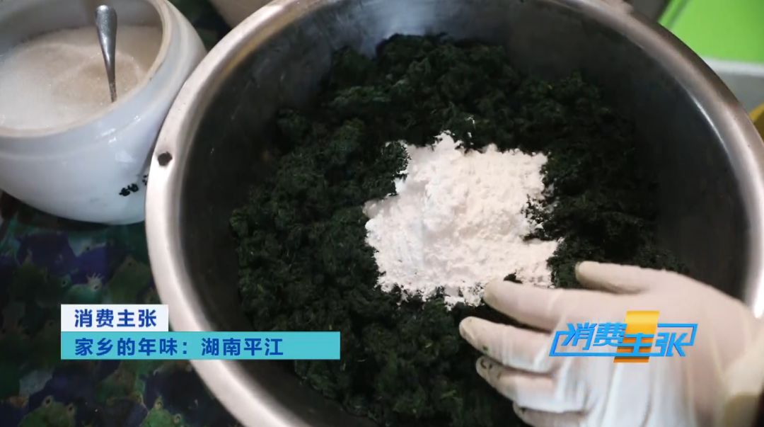 趁着炖鸡汤的时候,郑旦姣打算再做一个蒿子粑粑。十月份采摘的野生蒿子,经过加工后保存在冰箱里,现在仍然保持着原本的翠绿和清香。