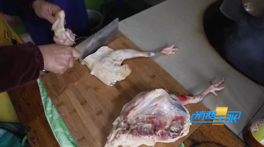 村民郑旦姣正在厨房忙碌着,她准备做一道本地特色菜,铁锅炖鸡。把老母鸡剁成块儿,然后要用茶油爆炒一下。