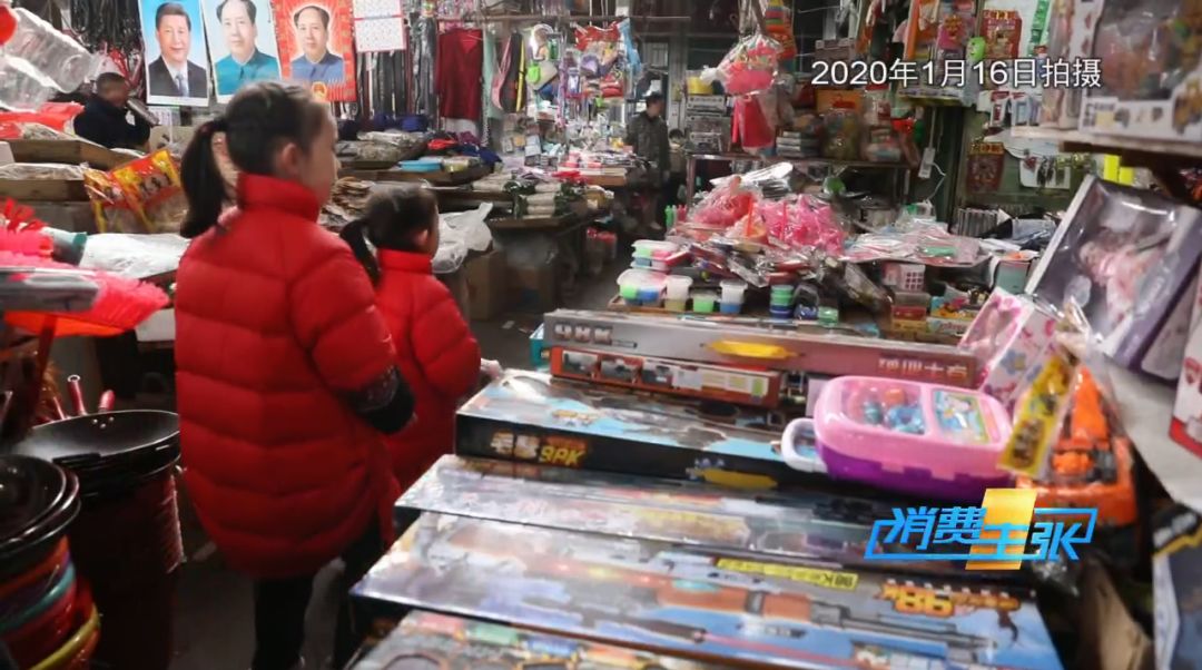 余含兮在这家店里买了炒米和酱干,而对于两个孩子来说,年货可能不仅仅只是吃的,4岁的周雨潼比较关注的就是卖玩具的摊位,转了好半天,她终于找到了自己中意的玩具。