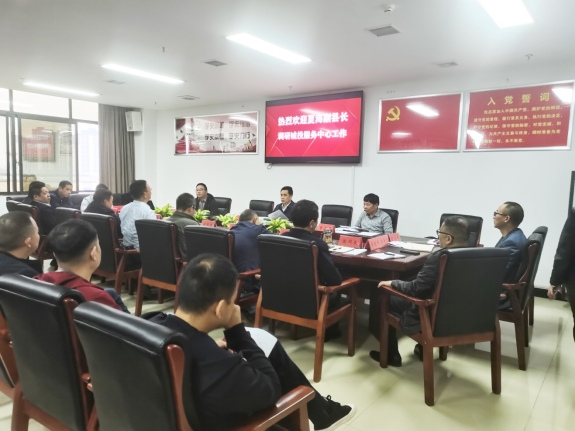 10月26日,副县长夏海到县城投服务中心召开调研座谈会,该中心全体班子成员、中层以上干部参加。政府办副主任曹建春主持会议。