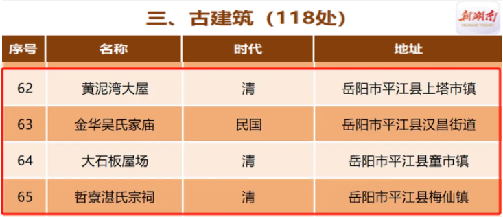 第十二批省级文物保护单位名单(平江部分)