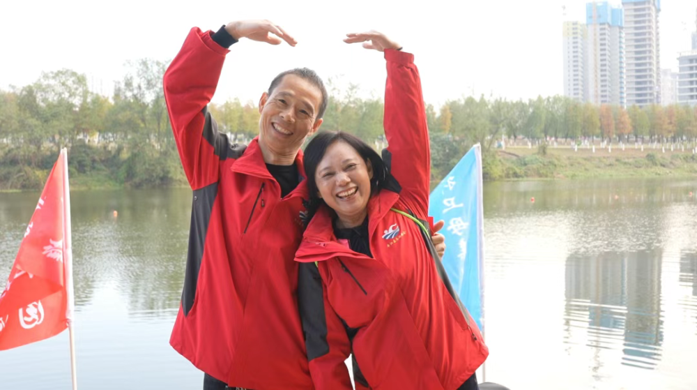一老一少,一个为了健康坚守,一个为成长出发,在同一条江水中,完成了两代人的精神接力。