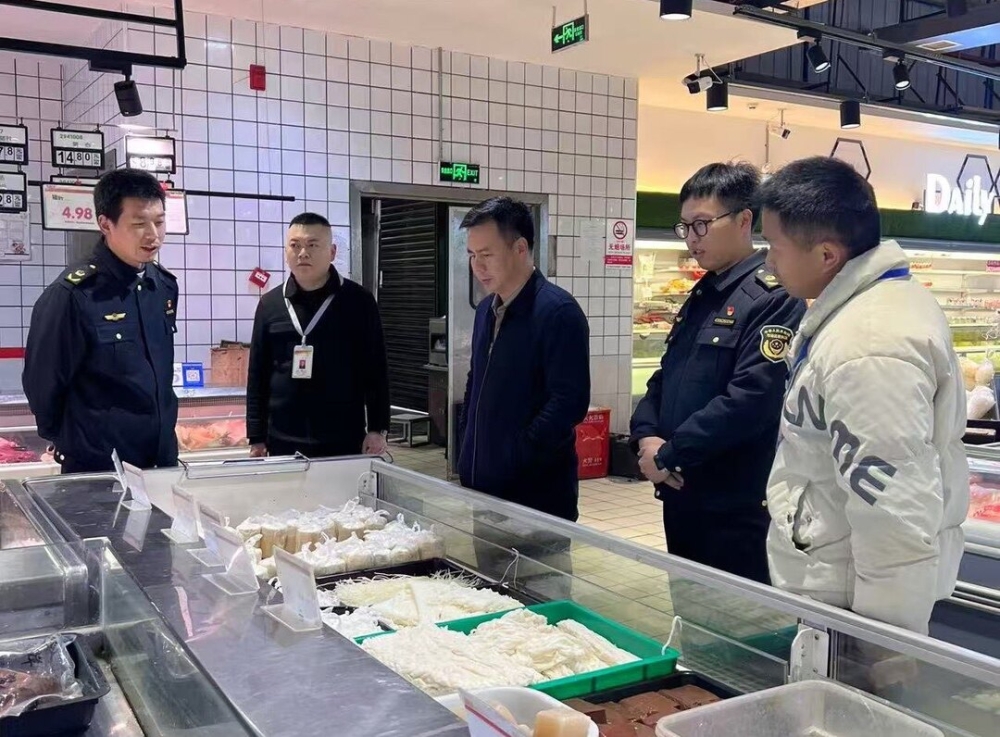 宣传活动一结束,检查组迅即前往辖区人流密集的超市开展食品安全突击检查。在生鲜冷链专区,执法人员依托“一品一档”溯源核查机制,逐一核验动物检疫合格证明、肉品品质检验合格证等资质文件;针对散装食品销售区,采取“标签+环境”双线核查方式,既查外包装标识信息完整性,又对现场温湿度调控设备进行专业检测。通过“重点突破+全链覆盖”的靶向监管模式,全面压实经营者食品安全主体责任。