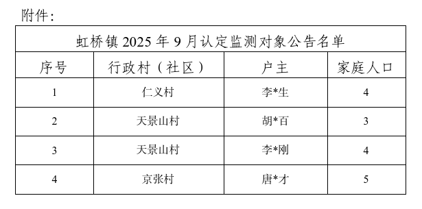 附件:虹桥镇2025年9月认定监测对象公告名单