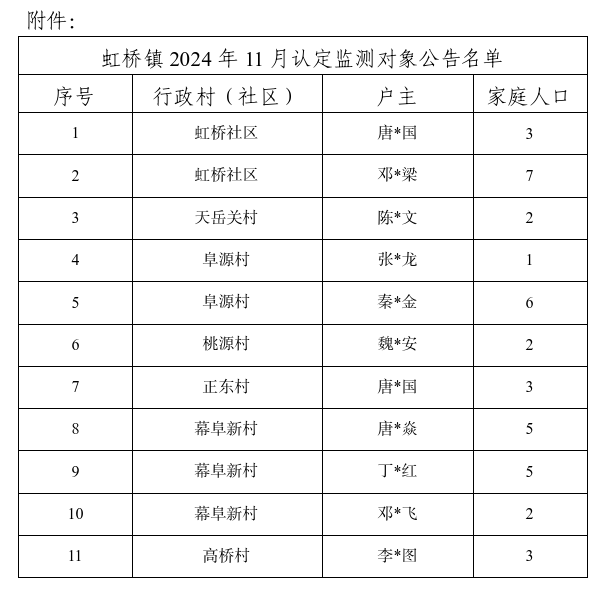 附件:虹桥镇2024年11月认定监测对象公告名单