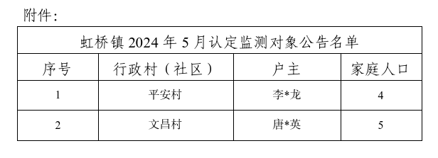 附件:虹桥镇2024年5月认定监测对象公告名单