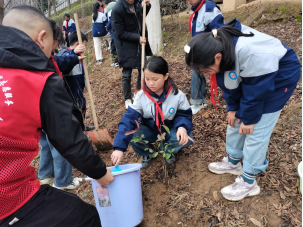 活动中,党员志愿者与学校师生分工协作,以多个小组的形式开展植树行动。他们挥动着手中的小铁锹,按照计划好的合适间距挖松土壤,刨出一个个能容纳小树苗的土坑,然后将小树苗放入其间、覆盖土壤,稍稍压实,再一一浇水。经过一个多小时的辛勤劳动,大家共同种下了数十棵树苗。学生们用稚嫩的小手擦拭额头上沁出的微微汗水,看着自己亲自栽种下的一抹抹新绿,脸上透出了满满的成就感。