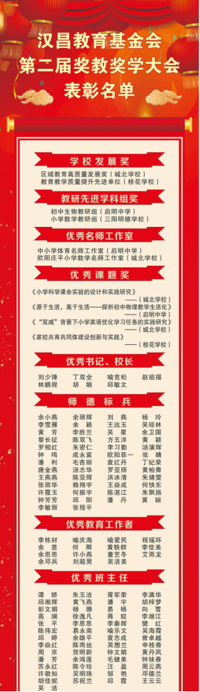 会上,街道党工委书记张创国代表街道党工委、办事处,向所有受到表彰的优秀老师和同学致以最热烈诚挚的祝贺,向长期坚守在教育一线的全体教育工作者致以最崇高的敬意,向一直以来鼎力支持汉昌教育事业发展的汉昌教育基金会、各社区(村)以及社会各界爱心人士致以最衷心的感谢!