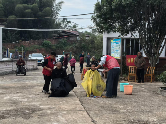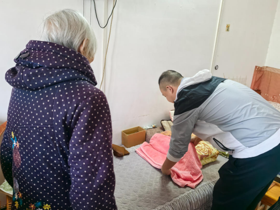 本次活动聚焦敬老院老人的生活所需与健康所盼,以贴心服务传递了满满的重阳暖意。街道主要负责人带领工作人员亲手将爱心物资递到老人手中,轻声道上“重阳安康”的祝福。接过沉甸甸的物资,老人们眼角眉梢都漾起了欣慰笑容。机关一支部党员则与平城社会服务中心社工组建起志愿服务队,分头走进老人宿舍开展内务整理。有的细心叠好被褥,有的弯腰清理角落杂物,指尖的温度顺着一件件小事,传递着最真切的敬老之情。宿舍外的临时理发点前也排起了小队,理发师带着专业工具耐心服务,一边询问老人的发型偏好,一边细心修剪头发。刚理完发的刘爷爷对着镜子端详道:“师傅手艺真好,这是我最喜欢的重阳礼物!”