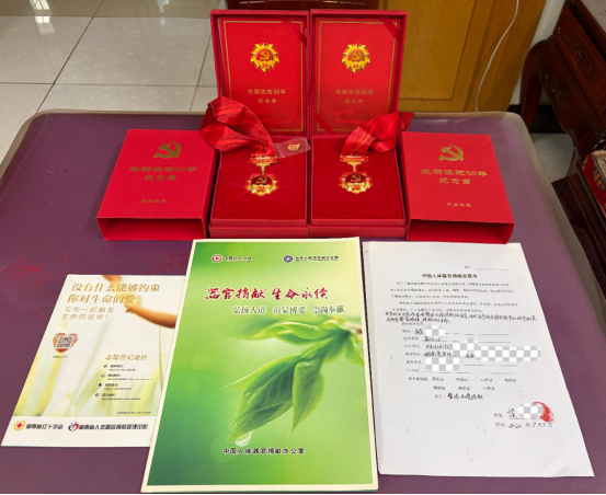 通过对接,2020年谈爷爷到县红十字会申请去世后将遗体无偿交给国家,红十字会的志愿者上门,帮助老人办理相关手续。坐在洒满阳光的客厅里,谈爷爷紧紧握着老伴的手,眼神坚定而从容,两人一同拿起笔,在无偿遗体捐献协议书上郑重地签下自己的名字,按下了鲜红的指印。没有丝毫犹豫,没有半点伤感,只有一份为医学事业奉献最后一份力量的坦然,一份身为党员的责任与坚守,就这样谈爷爷成为了全国排位第1351699位无偿遗体捐献志愿者。