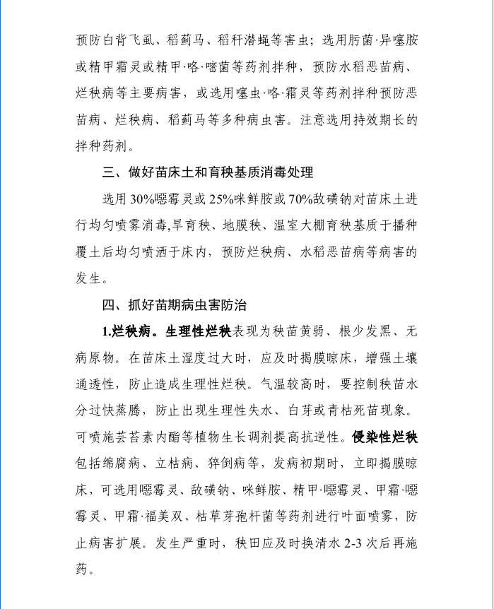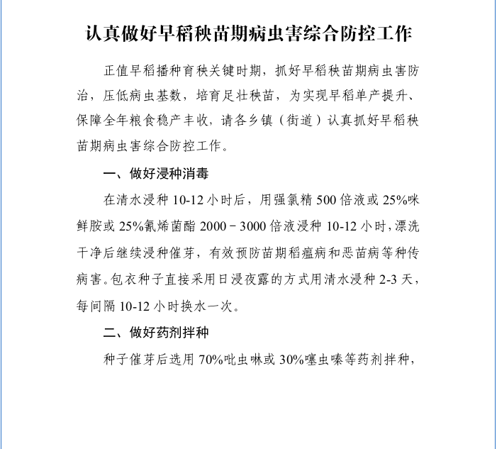 认真做好早稻秧苗期病虫害综合防控工作