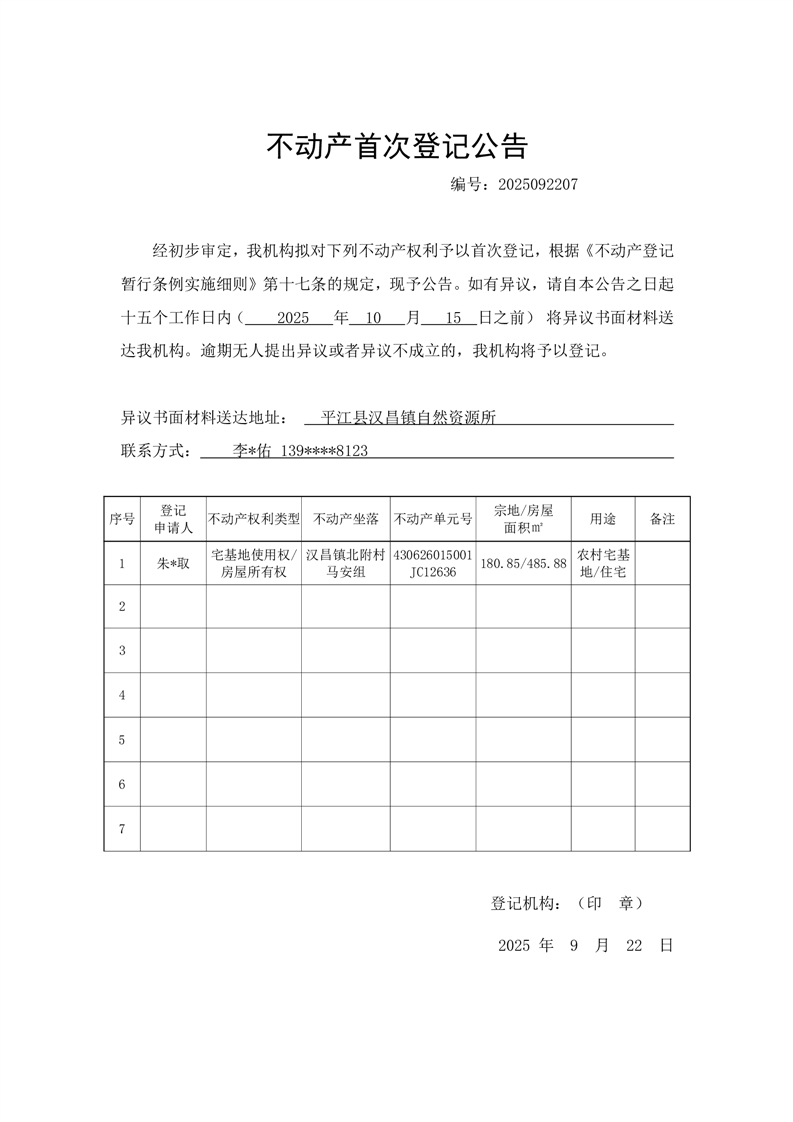 不动产首次登记(朱*取等)