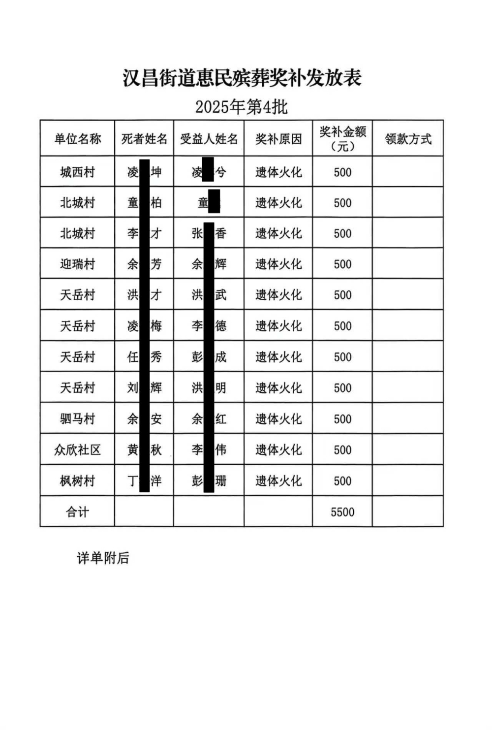 汉昌街道惠民殡葬奖补发放(2025年第四批)