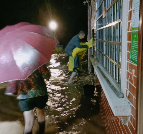 “您好!快来帮帮我,我腿脚不太方便。”6月30日凌晨,礼仁村办村干部罗福元和支村委在巡查过程中接到村民曹坎生的求助电话。家住礼仁村山下组的曹坎生靠开小卖铺为生,赶到现场的罗福元发现,积水已有30公分高,他守着自家一楼的财物也不愿撤离,降雨一直持续,随着积水越来越多,为了让曹坎生顺利转移,罗福元费尽口舌,“你先出去,我们来搬。”转移时发现水位又上涨了10厘米左右,为避免曹坎生不小心摔倒,罗福员躬身背起了他,将他转移到安全位置,随后罗福元与支部书记刘银楼迅速赶回,同心协力将三台冰箱,一台洗衣机架高起来。“虽然很累,但是这是作为一名青年干部应该做的,保障每一位村民的生命安全是我义不容辞的责任。”说完,罗福元和支村委连忙向下一个组赶去。