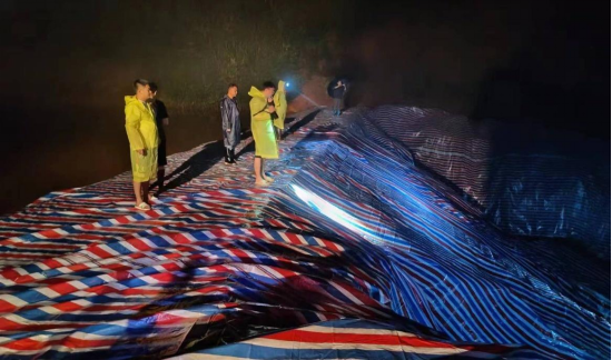 7月1日傍晚,雨势渐渐减弱,大兴村两名组长余可君、余来模出门查看汛情时发现马蹄坑山塘水已漫坝,第一时间向乡村两级报告请求支援。由于之前的大雨冲刷,前往马蹄坑的路上已经多处塌方,两人只能互相搀扶,从安全的地方翻山越岭到达堤坝上查看情况。接到讯息第一时间,大兴村联点领导徐子牛立即组织机械、人员力量前往马蹄坑处险。“大兴也是大家的家,也是我的家,我得救。”自家都已被洪水淹了的组长余益林也顾不上家中受灾情况主动加入到抢险队伍当中去了。抢险现场,挖掘机的轰隆轰隆的作业声打破了黑夜的寂静,此刻,他们正冒着雨抬着厚重的彩油布沿着堤坝从下往上一层一层进行铺盖,一直到晚上8点多,在现场人员的努力下5块彩油布已全部铺完,溢洪道完成拓宽,马蹄坑隐患基本解除。黑夜中,只留下他们一个个渐渐远去的背影,让人感觉充满力量。