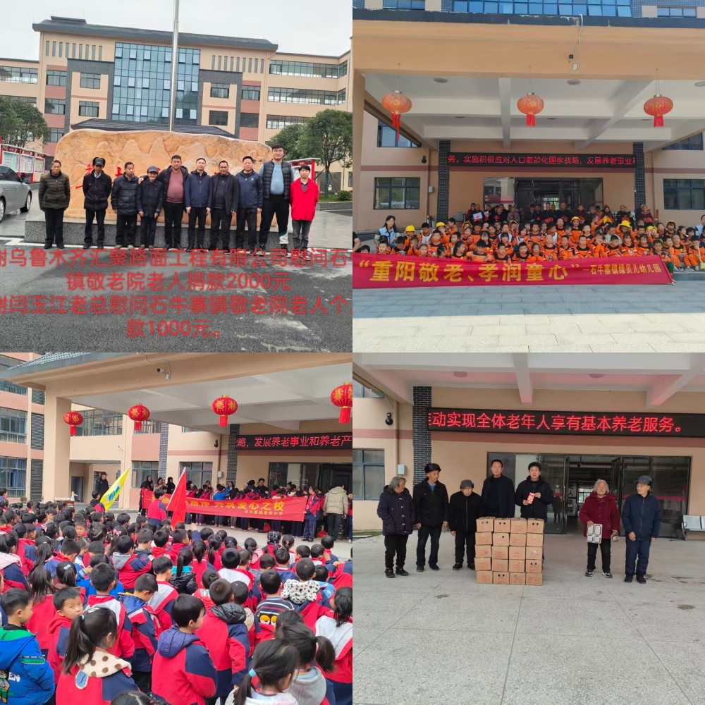 2025年10月,普安小学重阳节到院慰问并赠送零食、猪肉及红包;