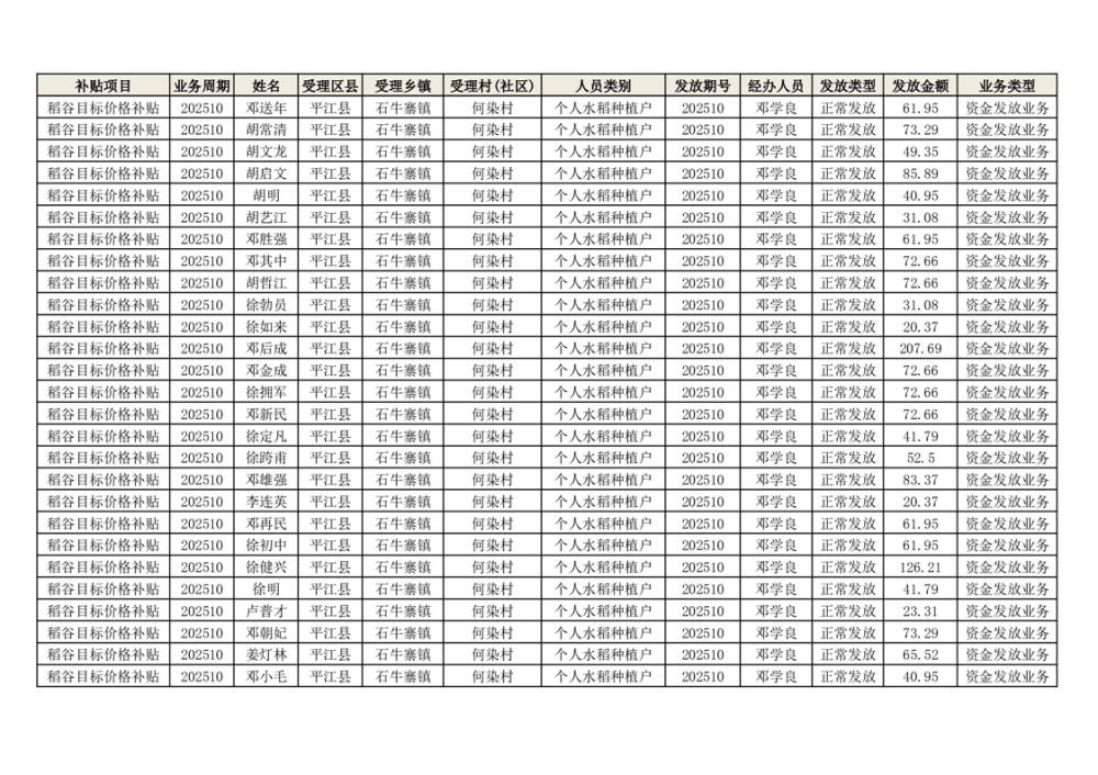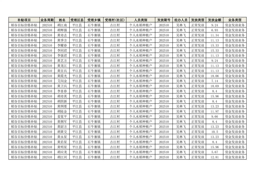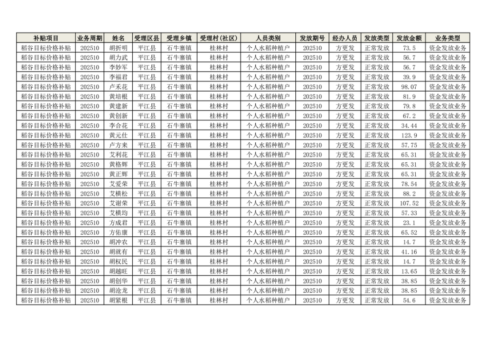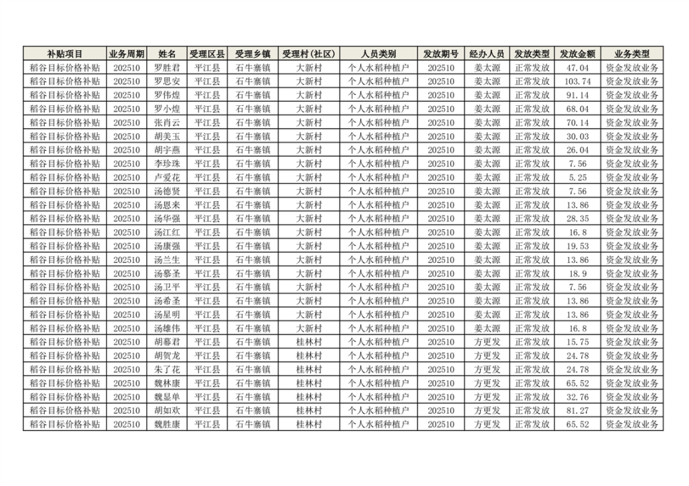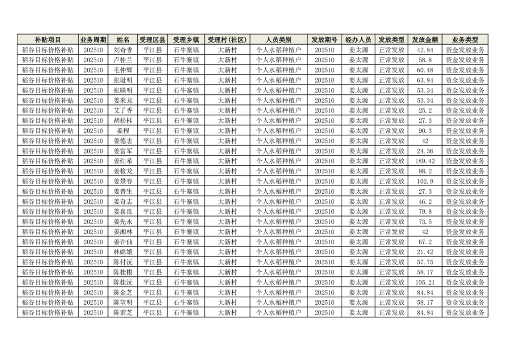 2025年石牛寨镇稻谷目标价格补贴发放1(古江、大坪、大新、桂林、何染)