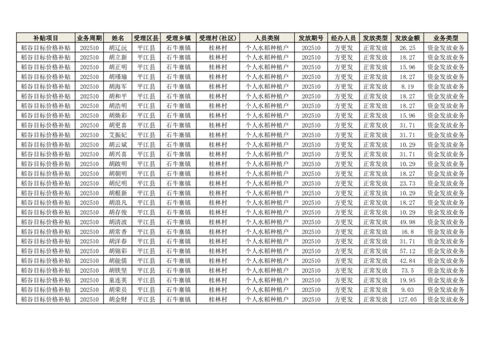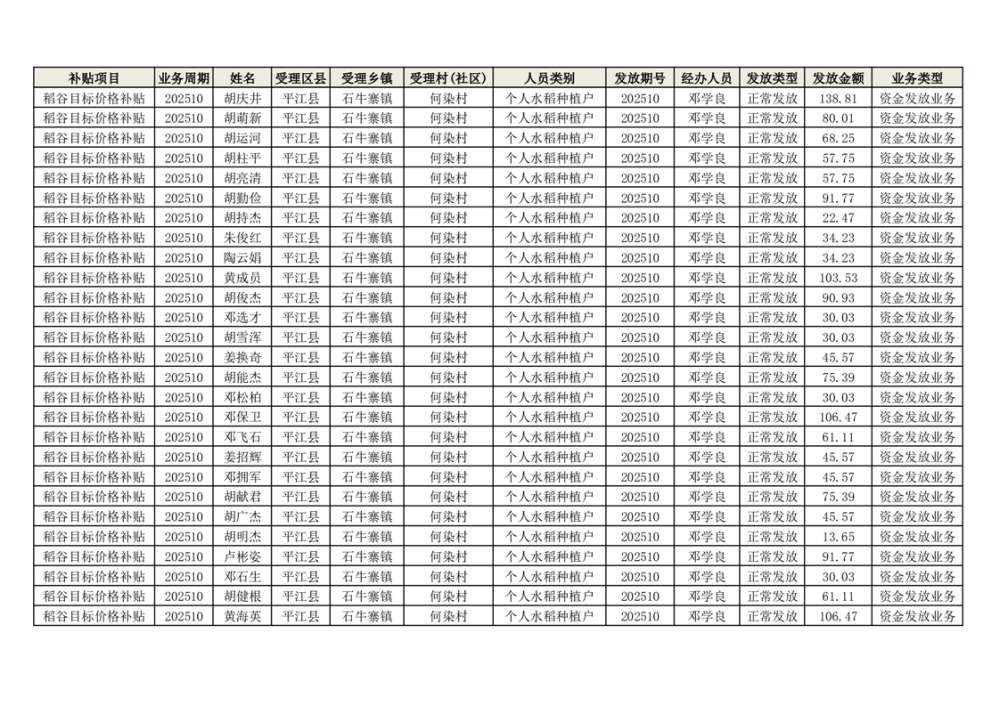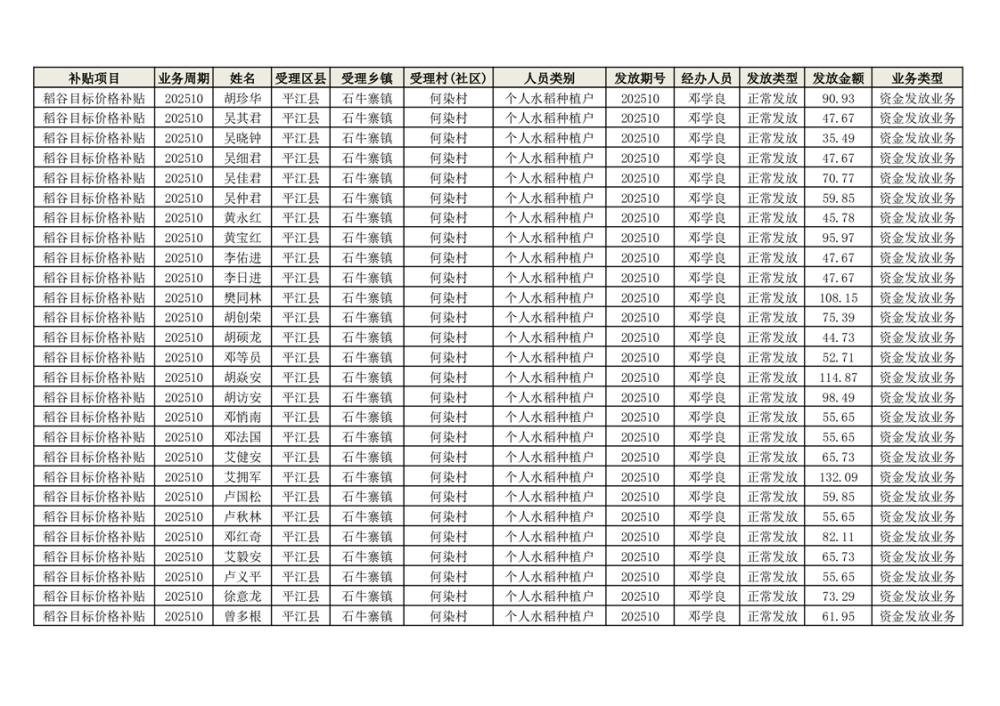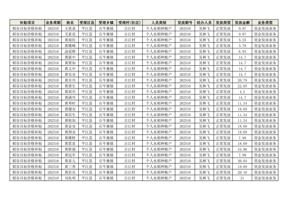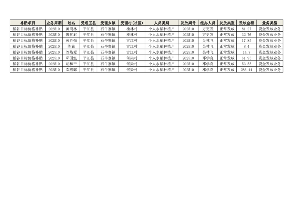 2025年石牛寨镇稻谷目标价格补贴发放1(古江、大坪、大新、桂林、何染)