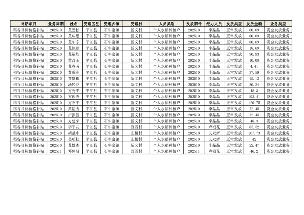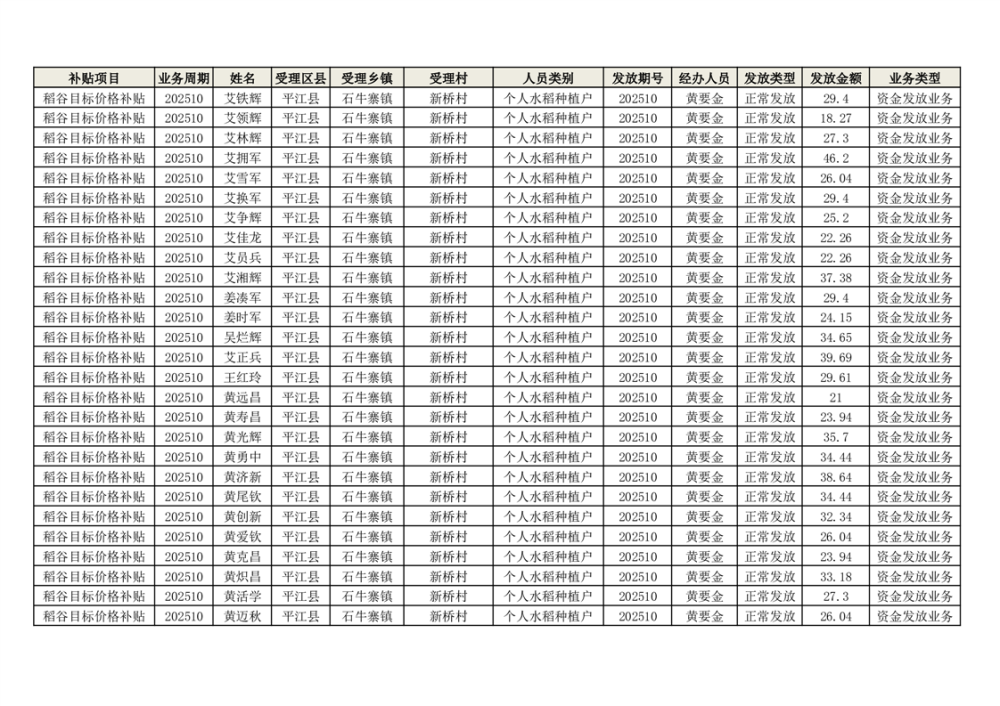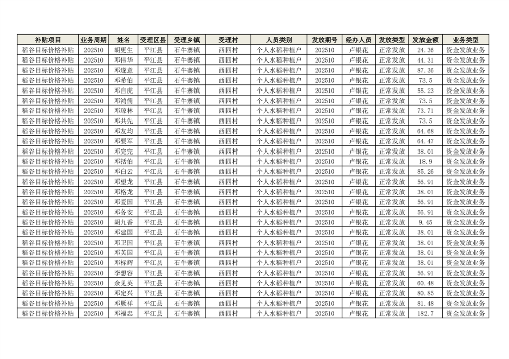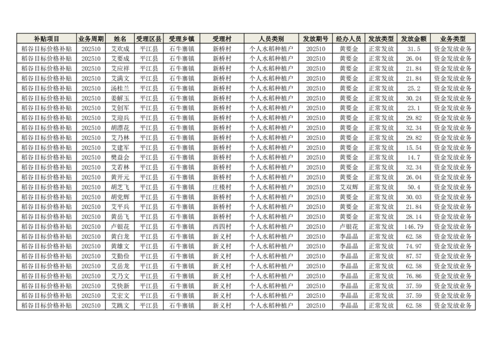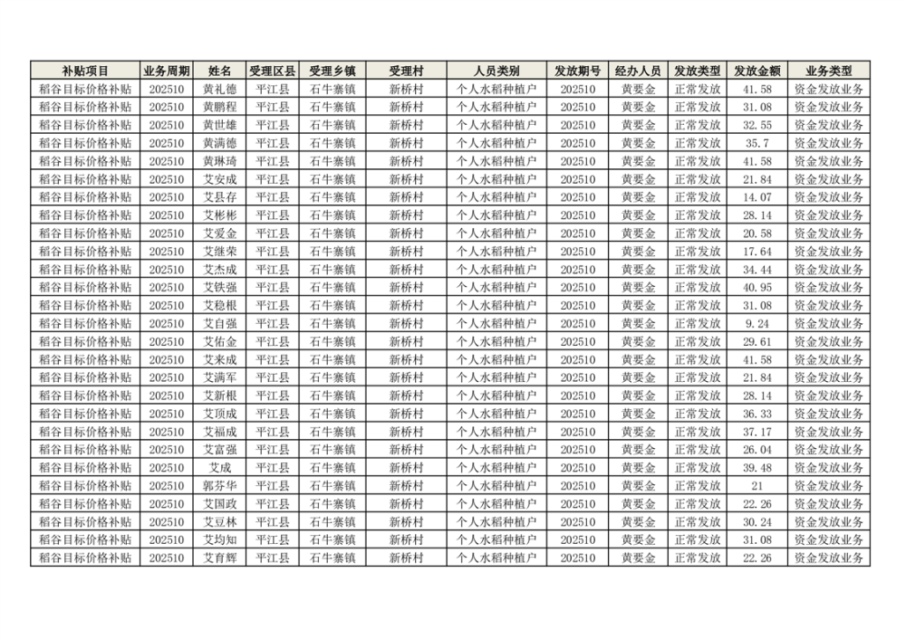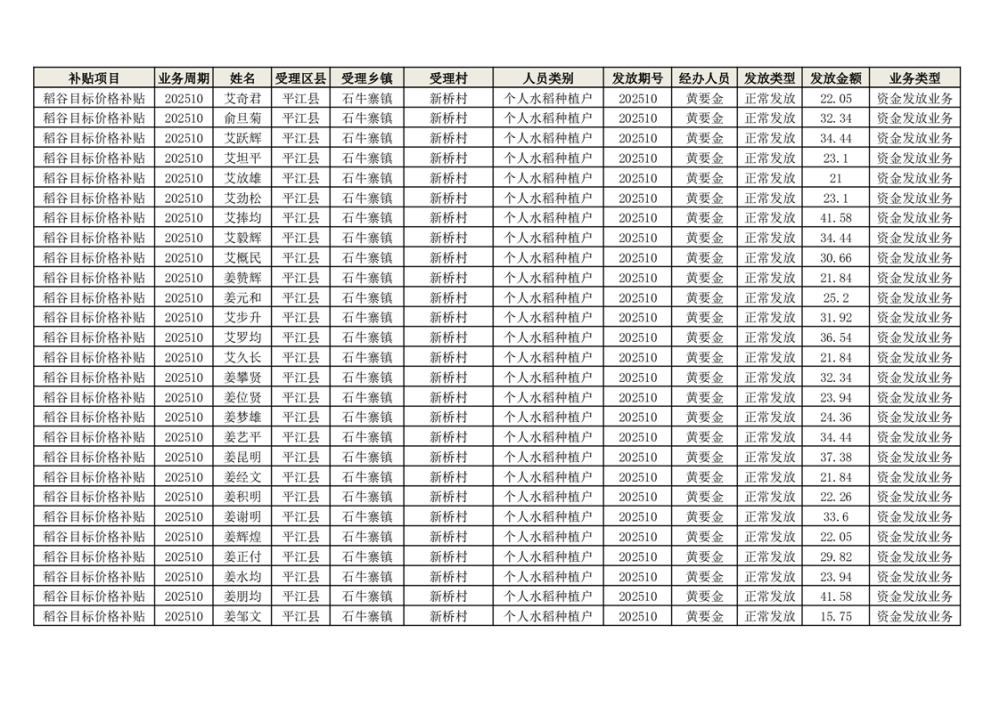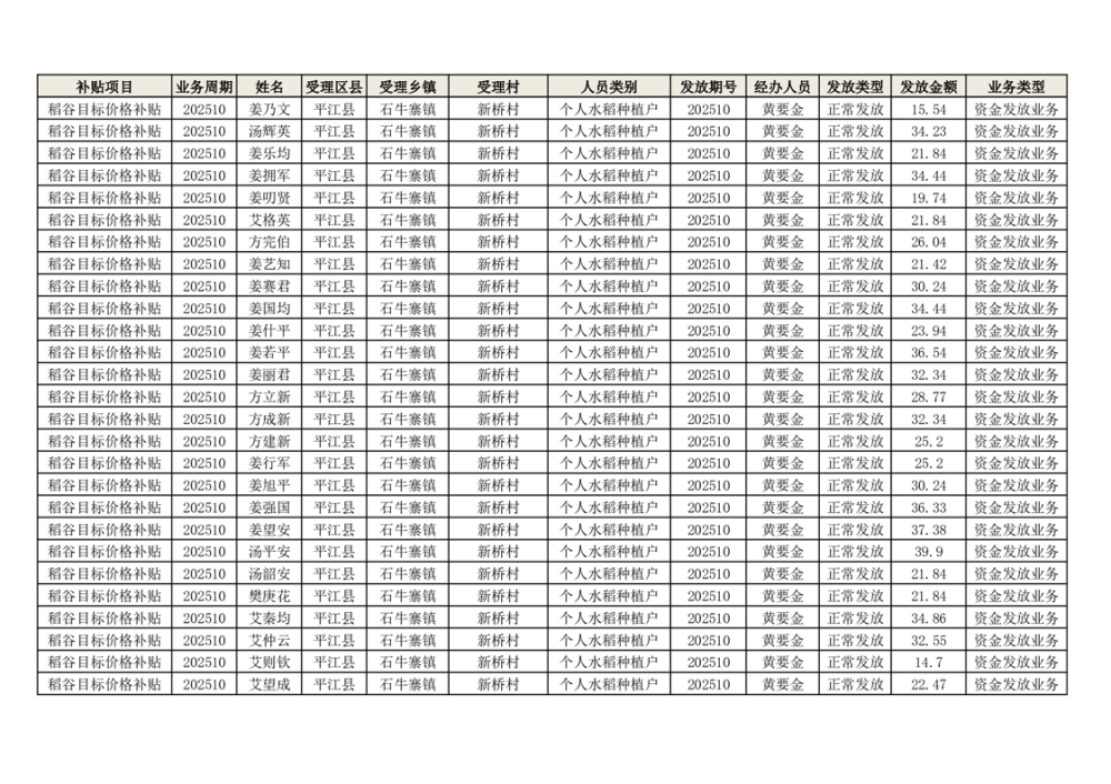 2025年石牛寨镇稻谷目标价格补贴发放3(西四、新桥、新义、庄楼)