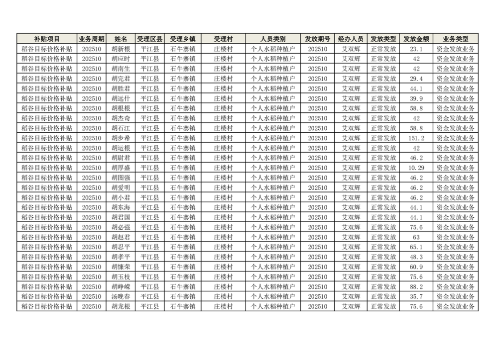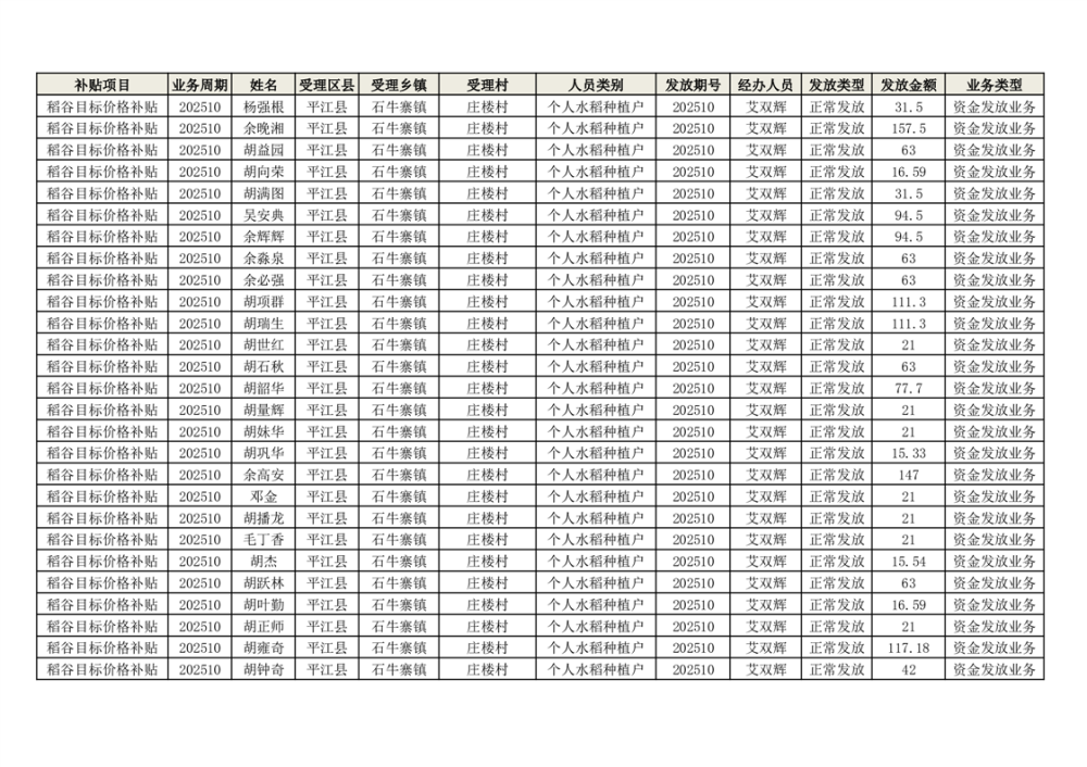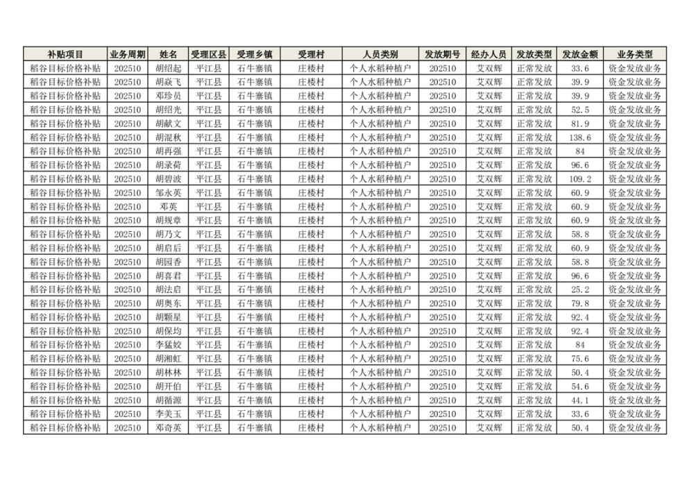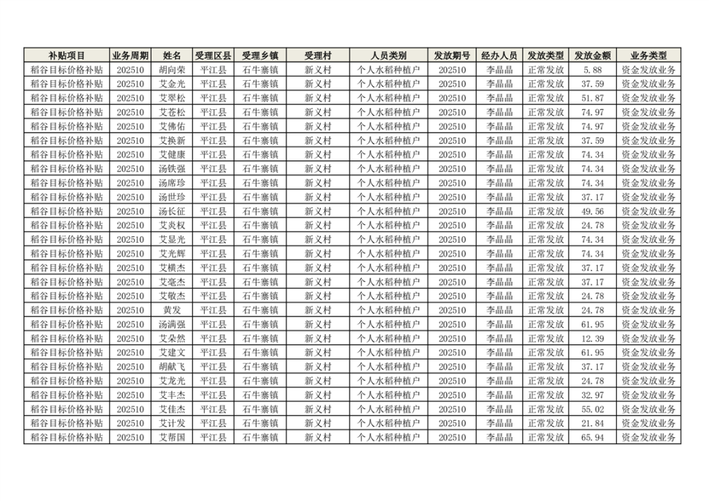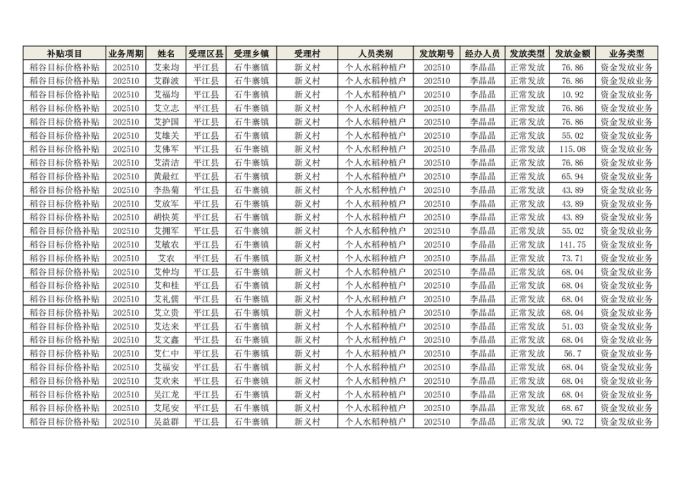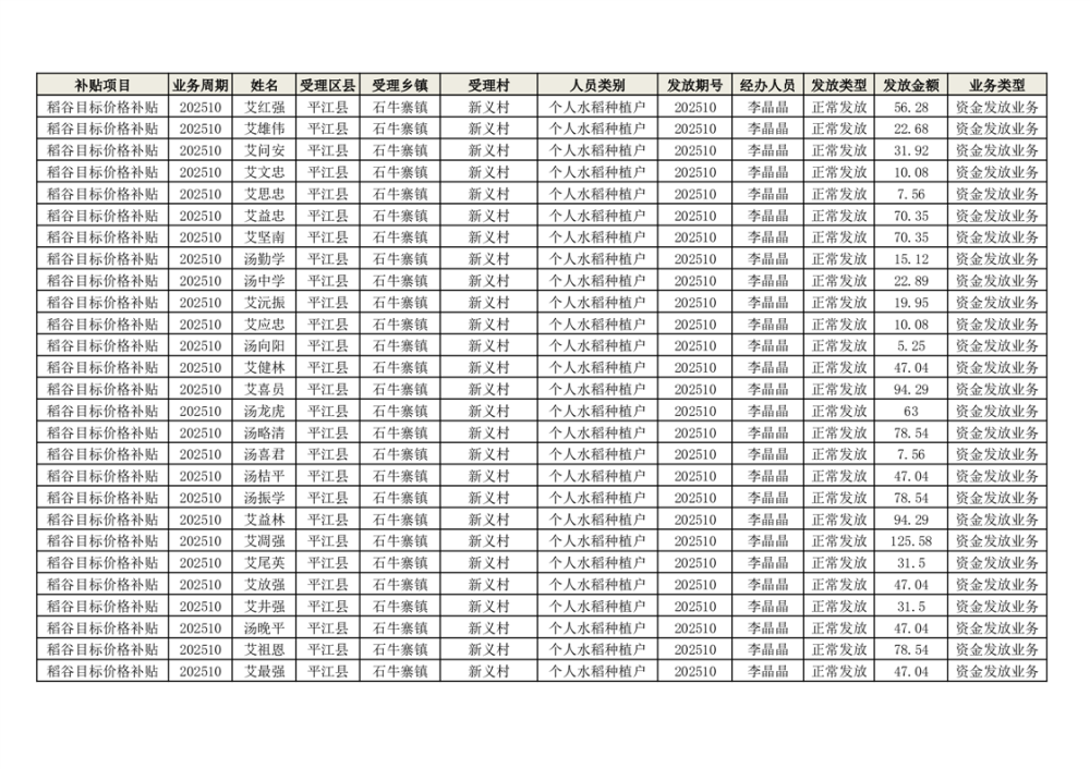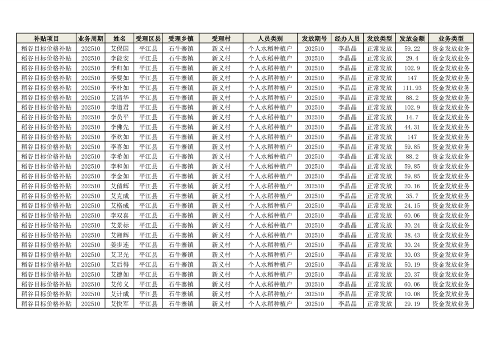 2025年石牛寨镇稻谷目标价格补贴发放3(西四、新桥、新义、庄楼)
